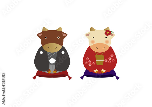 丑年のイラスト。干支の素材。 十二支のキャラクター。