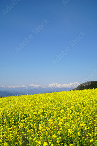 菜の花と北アルプス