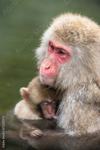 温泉に浸かるニホンザル 秋の地獄谷の猿