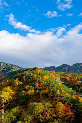 カラフルに色づいた秋の森