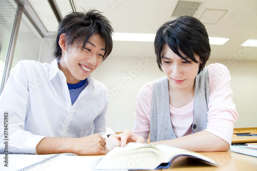 勉強する男子大学生