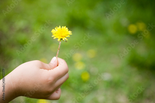 子供の手とたんぽぽ