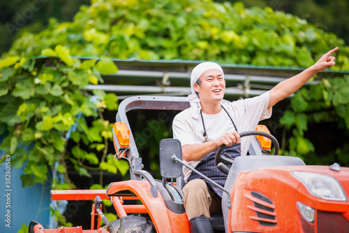 トラクターに乗る男性