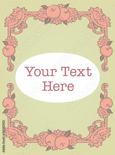 ヒメリンゴ、マムの花を使ったアンティークな装飾フレーム。ベクター素材
