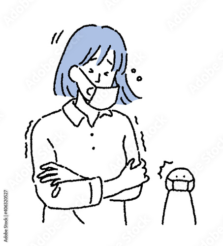 シンプルなタッチ マスクをつけた風邪でくしゃみをする女性のイラスト