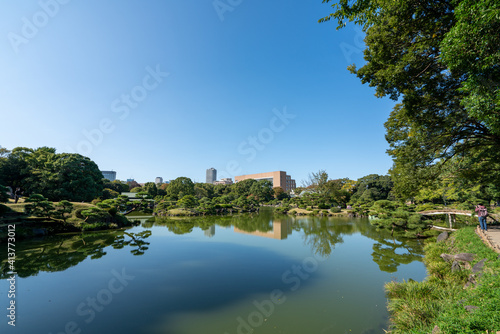 冬の清澄庭園と青空の風景