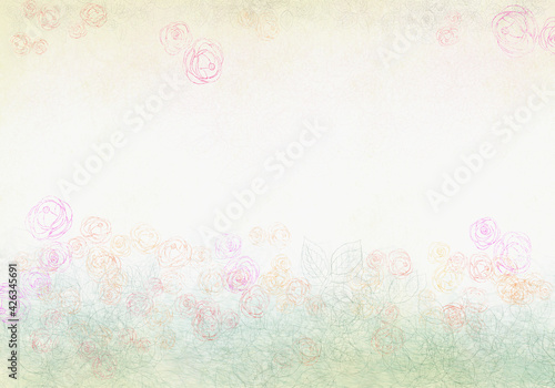 クラシカルな色合いの色鉛筆画 野ばらの背景イラスト