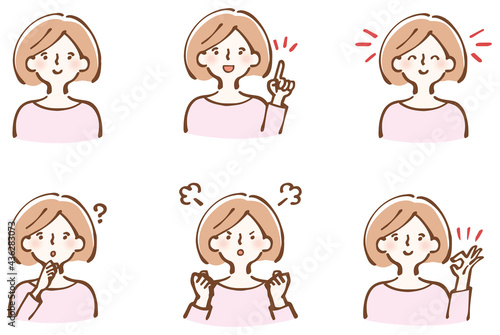女性表情 イラスト セット