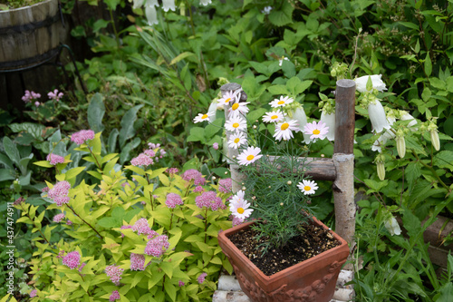 夏の庭の鉢植えのデイジー