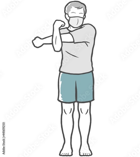 マスク 腕伸ばし 中年男性 ストレッチ