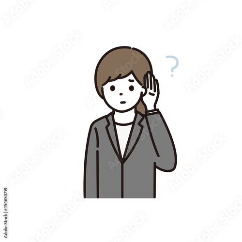 難聴で耳が聞こえづらいスーツの女性のイラスト