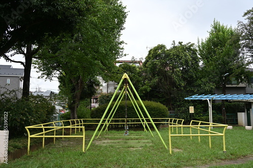 公園にあるブランコを横から見た