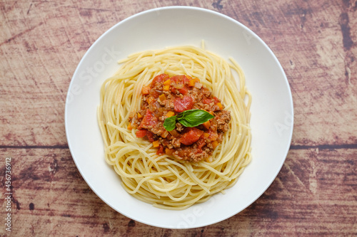 定番 パスタ スパゲティ ミートソース おしゃれ に 盛り付け 真上から
