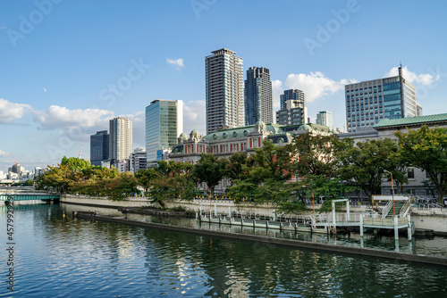 大阪府大阪市・大阪中之島と北浜のビジネス街を臨む風景