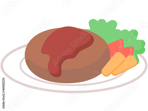 ソースがかかったハンバーグの美味しそうなシンプルイラスト