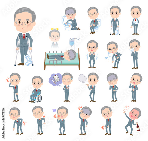 怪我や病気の状態のビジネスシニア男性のセット