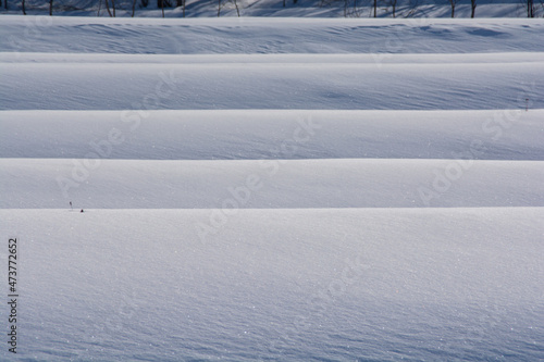 雪が積もった棚田の影