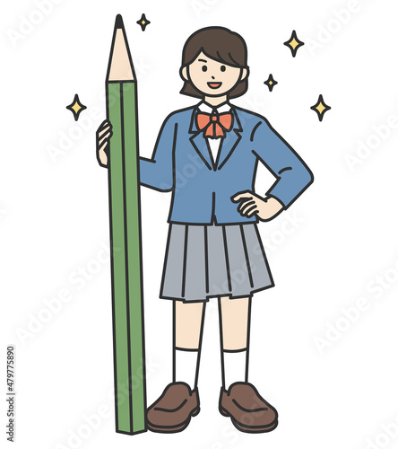 鉛筆を持っている女子学生のイラスト素材