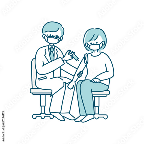 予防接種を受ける女性のイラスト(マスクあり)