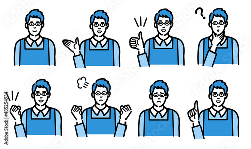 メガネをかけた主夫の仕草、ジェスチャーのセット