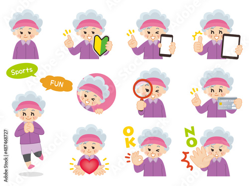 運動着のシニア女性 ジェスチャー スポーツ 運動 健康