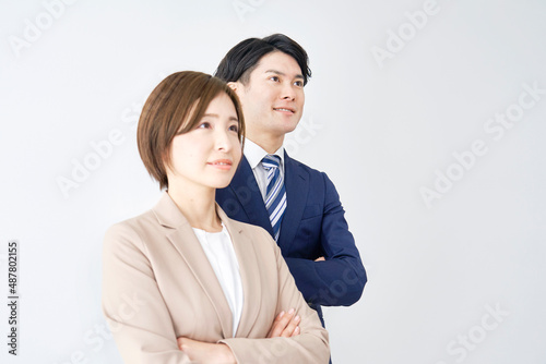 ビジネスウーマンとビジネスマン 腕組み 白背景