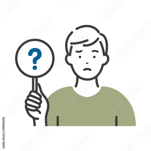 回答札を持つ若い男性(?札)