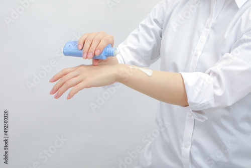 腕にクリームを塗る女性