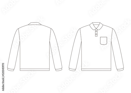 ポロシャツ 長袖 丸襟シャツ ポケット 服 テンプレート イラスト モノクロ シンプル ゴルフシャツ