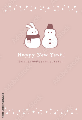 雪だるまとうさぎが並んだ卯年年賀状デザイン 茶色背景