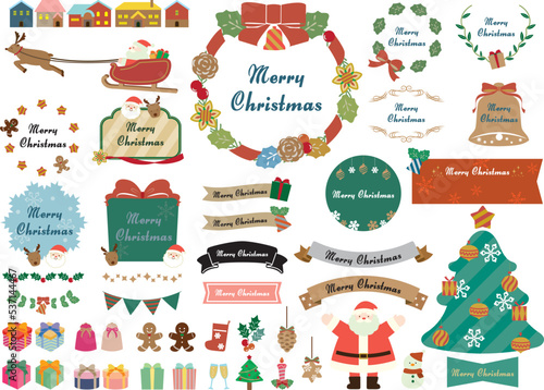クリスマスのかわいいフレームとイラストとリボンのセット・レッドリボン