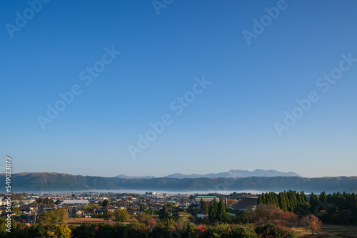 雲海の残る阿蘇谷から外輪山、くじゅう連山の遠望