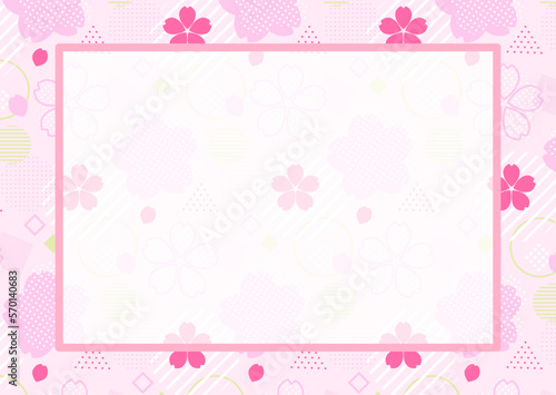 ポップでキュートな図形と桜の花柄のカード 横向き