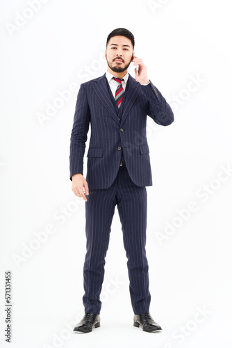 スマートフォンで通話するスーツ姿の男性