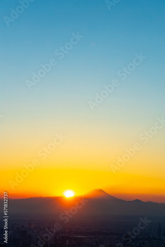 夕方の富士山と東京の街並み
