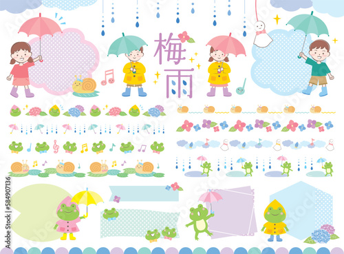 梅雨の飾り罫やフレームのイラストセット