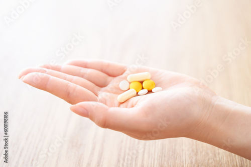 薬を持つ女性の手元