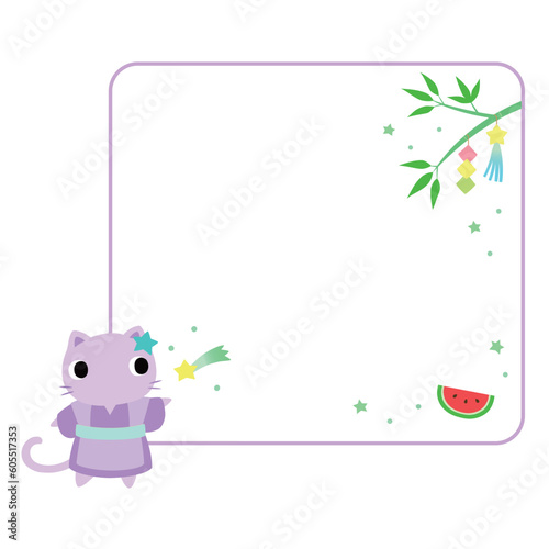 七夕のネコ フレーム+装飾付