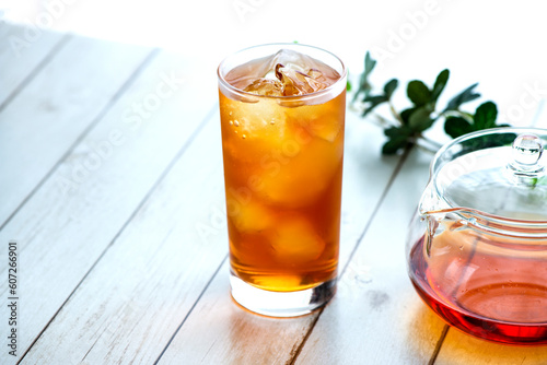 窓際の冷たいアイスティー