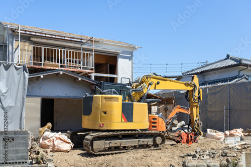 一戸建て住宅の解体工事現場