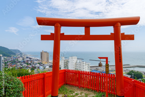 荒熊神社の海を望む赤い鳥居 愛知県南知多町