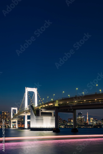 ライトアップされたレインボーブリッジと東京都心の夜景
