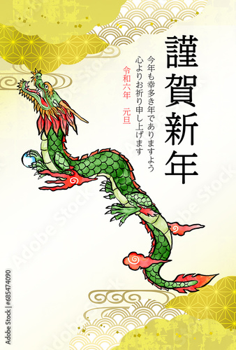 辰年年賀状 艶やかな金の背景と昇り竜のテンプレート