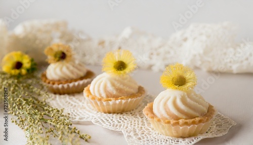 ミモザのイメージのタルト菓子 美しいスイーツ