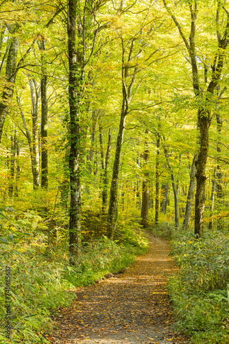 日本 青森県西津軽郡深浦町の白神山地西部に位置する湖沼群、十二湖のブナの森と紅葉