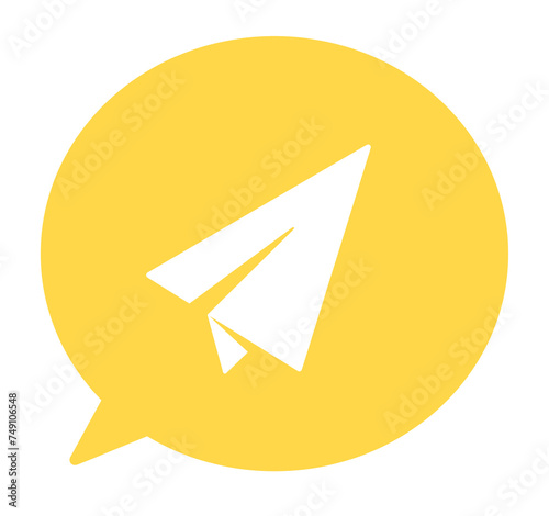 シンプルな黄色の紙飛行機と吹き出し
