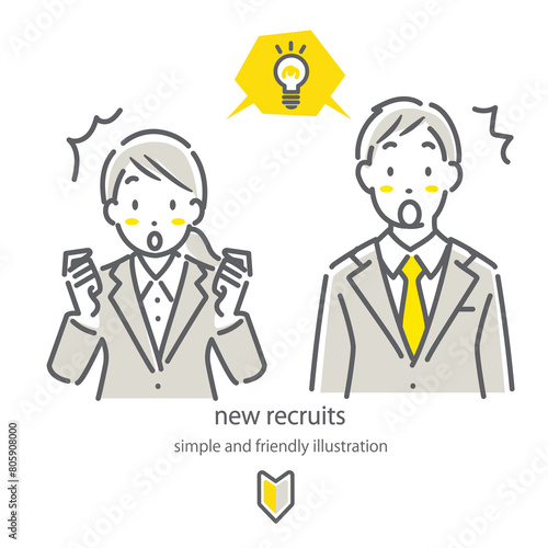 就職活動中の女性と男性セット シンプルでお洒落な線画イラスト