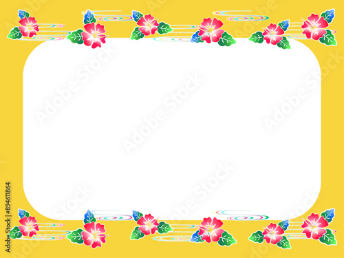 沖縄の伝統、紅型のハイビスカスのフレーム