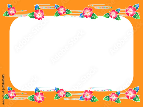 沖縄の伝統、紅型のハイビスカスのフレーム