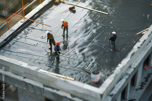ビルの防水・修繕工事風景
